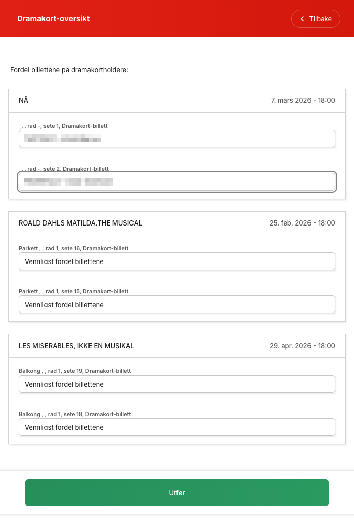 Nå er du nesten i mål – men for at dine Dramakortvenner skal få sine billetter tilsendt til sin e-post og telefon, må du ta jobben med å fordele billettene til dem. Husk å minne vennene dine på at bookingsjefen fortjener en premie for jobben.